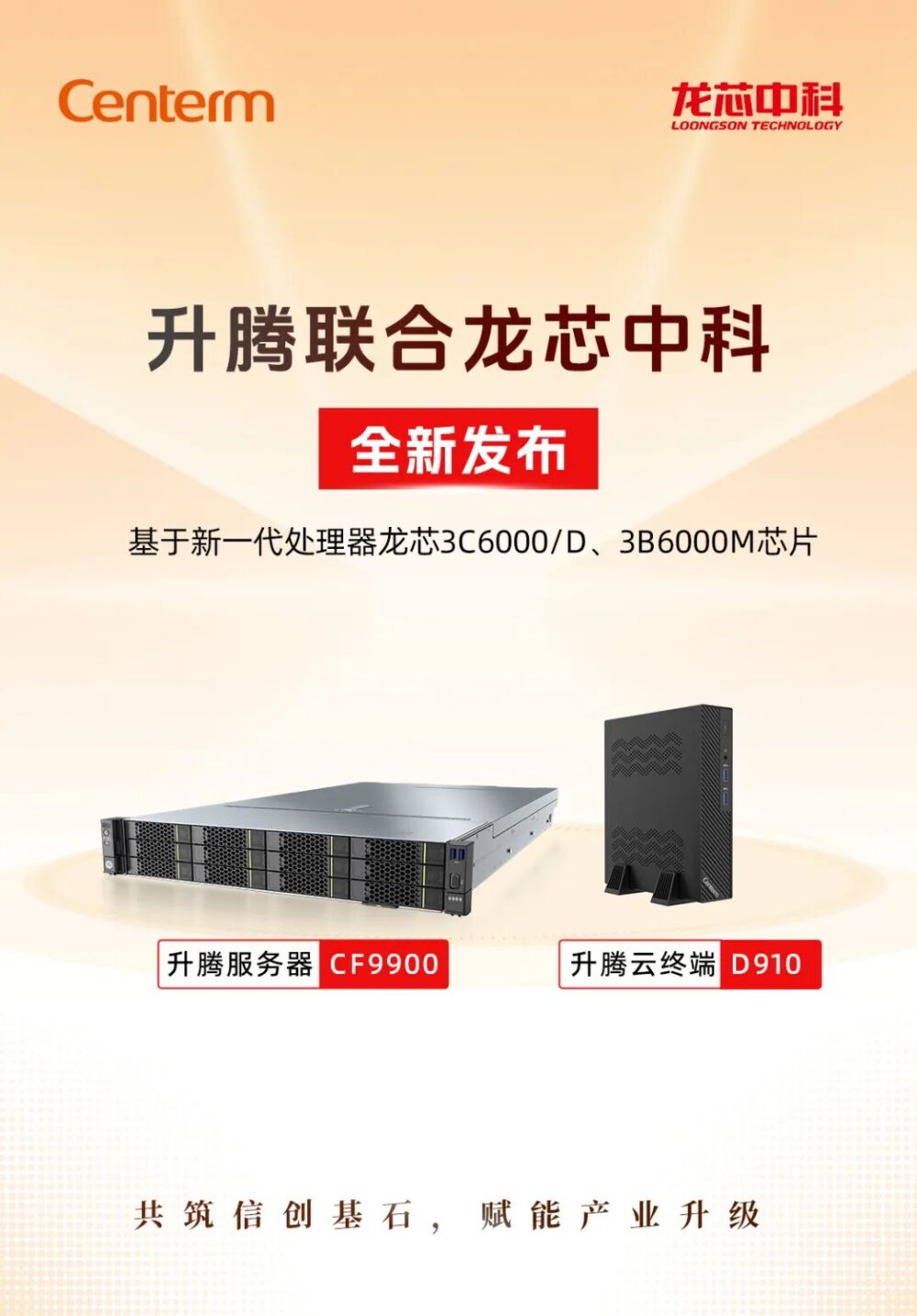 作为龙芯中科的重要相助同伴,腾博会官网受邀参会并出席新品宣布仪式。在运动现场,腾博会官网联合龙芯中科重磅宣布基于“新一代通用处理器龙芯3C6000/D”的腾博会官网效劳器CF9900,以及基于“新一代通用处理器龙芯3B6000M”的腾博会官网云终端D910,双方携手打造兼具“高效能”与“高宁静”的信立异品,配合助力自主工业生态的蓬勃生长。