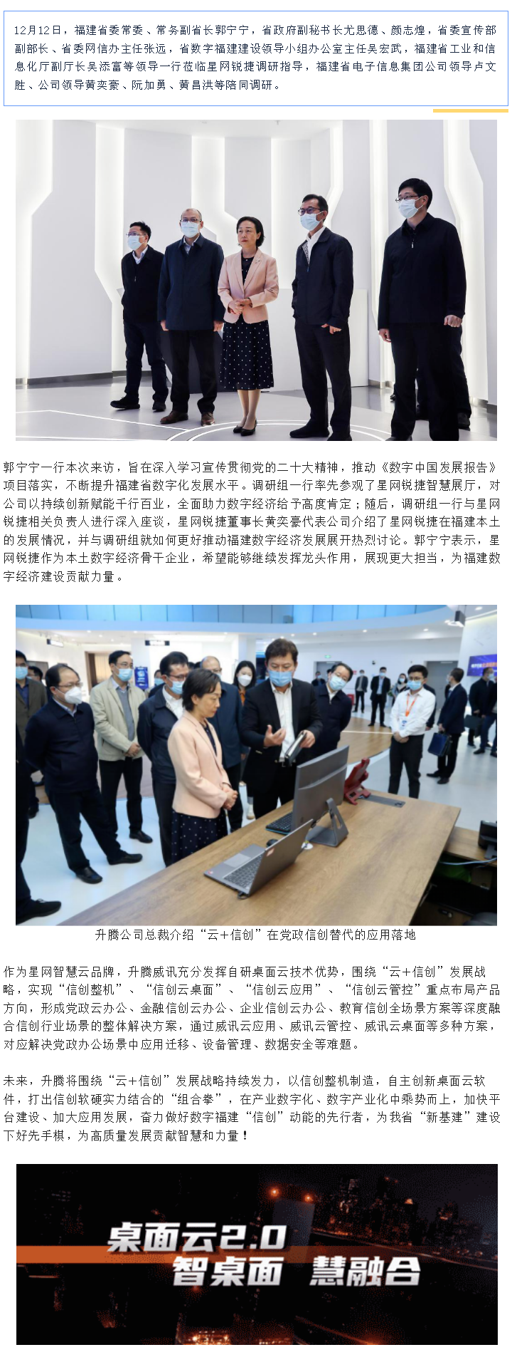 福建省委常委、常务副省长郭宁宁一行莅临星网调研指导 ,腾博会官网威讯“云+信创”引关注!