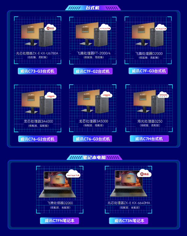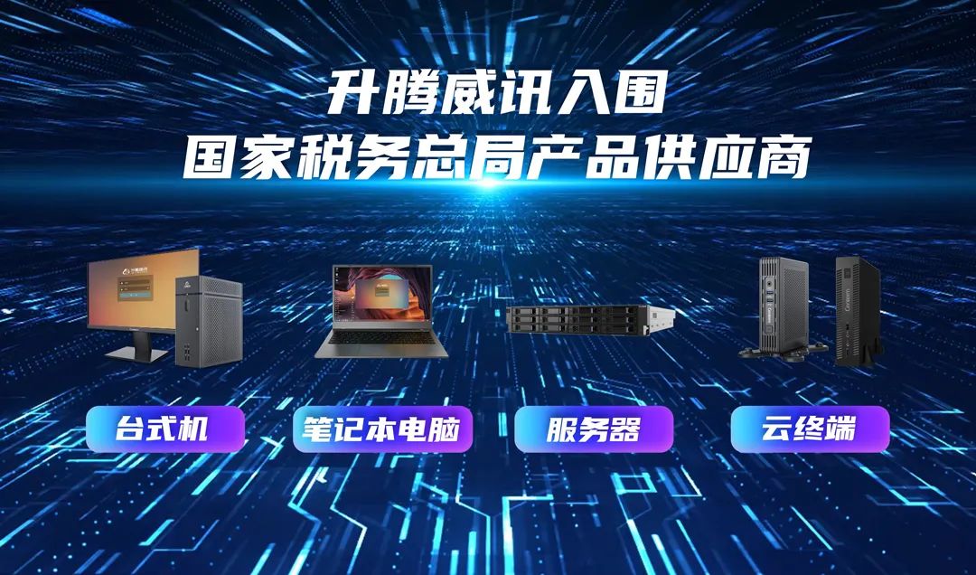 升腾威讯作为国家税务总局计算机设备的入围批量集采供应商,提供兆芯、飞腾、龙芯、海光信创整机产品8款,在税务系统可按需选购。