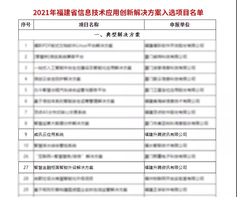 升腾威讯云应用系统、智慧金融柜面智能外设解决方案两款产品入选,注:排名不分先后