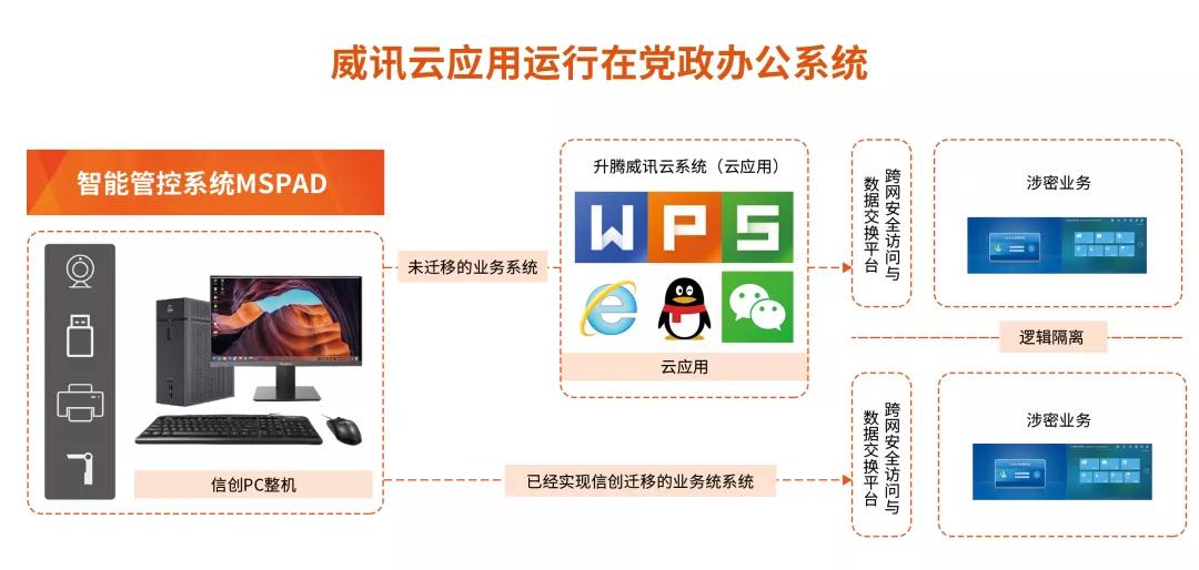 通过威讯云应用实现业务系统迁移适配,做到党政/金融办公业务系统渐进式迁移,实现Windows业务快速平滑迁移,缩短适配周期;通过云应用技术、外设映射技术、用户隔离技术完成处理党政/金融人脸识别、指纹录入、票据业务处理等,实现对党政办公全业务适配,保障党政/金融业务系统连续性。关于云应用在党政公安业务系统的应用,点击查看:7大优势!一张图读懂公安信创办公建设。