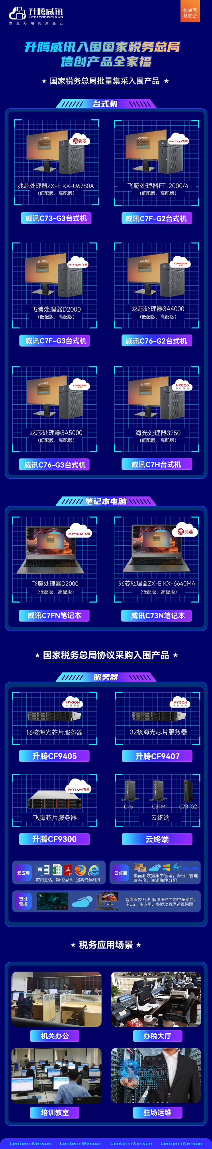 腾博会官网威讯再入围16款国家税务总局批量集采信创整机!