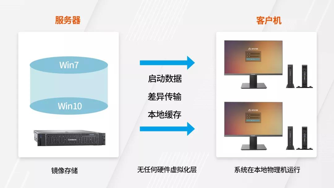方案终端全方位适配主流CPU客户端的升级及使用,可采用广域网部署,针对连锁机构、营业网点和酒店,在不改变现有网络环境就能实现远程系统镜像更新、策略等管控。
