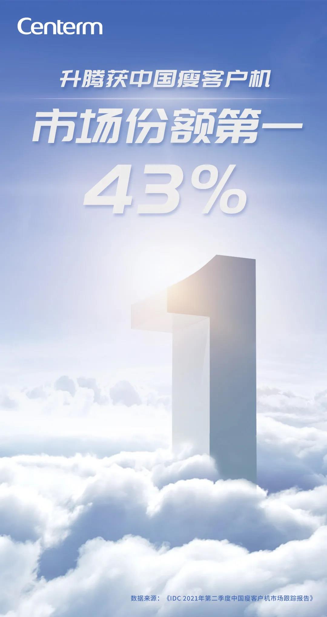 据最新发布的《IDC 2021年第二季度中国瘦客户机市场跟踪报告》显示,升腾蝉联中国区瘦客户机市场上半年销量第一,市场占有率再创突破,市场份额攀升至43%,持续领跑市场!