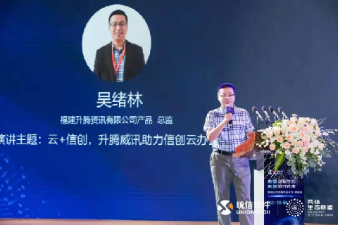 在大会上升腾资讯产品总监吴绪林发表名为《云+信创 升腾威讯助力信创云办公落地》的主题演讲,详细介绍了威讯新一代的信创整机及云应用解决方案。