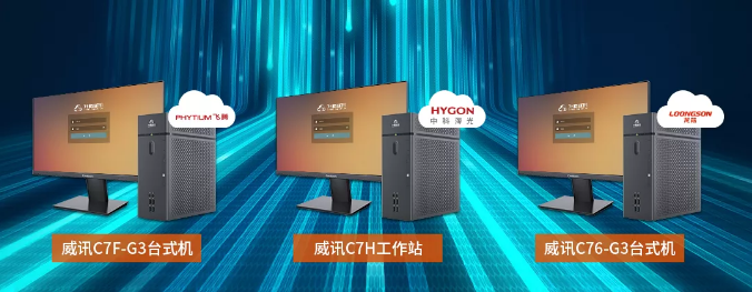 发布了基于飞腾D2000处理器的威讯C7F-G3台式机,基于海光C86 3250处理器的威讯C7H工作站,基于龙芯3A5000处理器的威讯C76-G3台式机。
