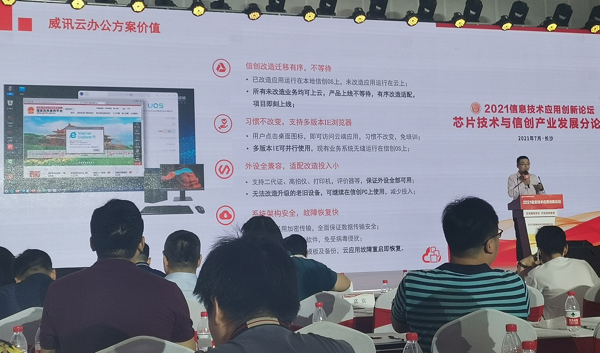 本次论坛以“庆祝建党百年 开启信创新局”为主题,全面展示信息技术应用创新(简称信创)最新成果,就用户共性需求进行研讨,并启动2021信创“大比武”活动。升腾亮相2021信息技术应用创新展览,带来新一代信创整机、信创云方案,并受邀出席专业论坛,发表《威讯云应用解决方案》主题演讲,全面展示升腾在信创领域的创新成果及标杆案例。