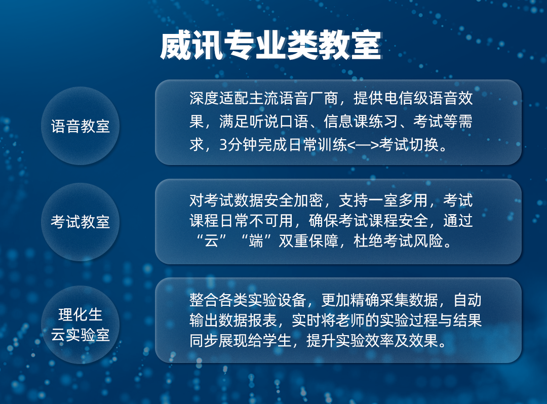 在语音教室、考试等K12专业教师场景:陆续推出理化生云实验室、语音云教室、考试云教室等,全面满足专业类云教室数据安全、课程安全、设备安全的要求。