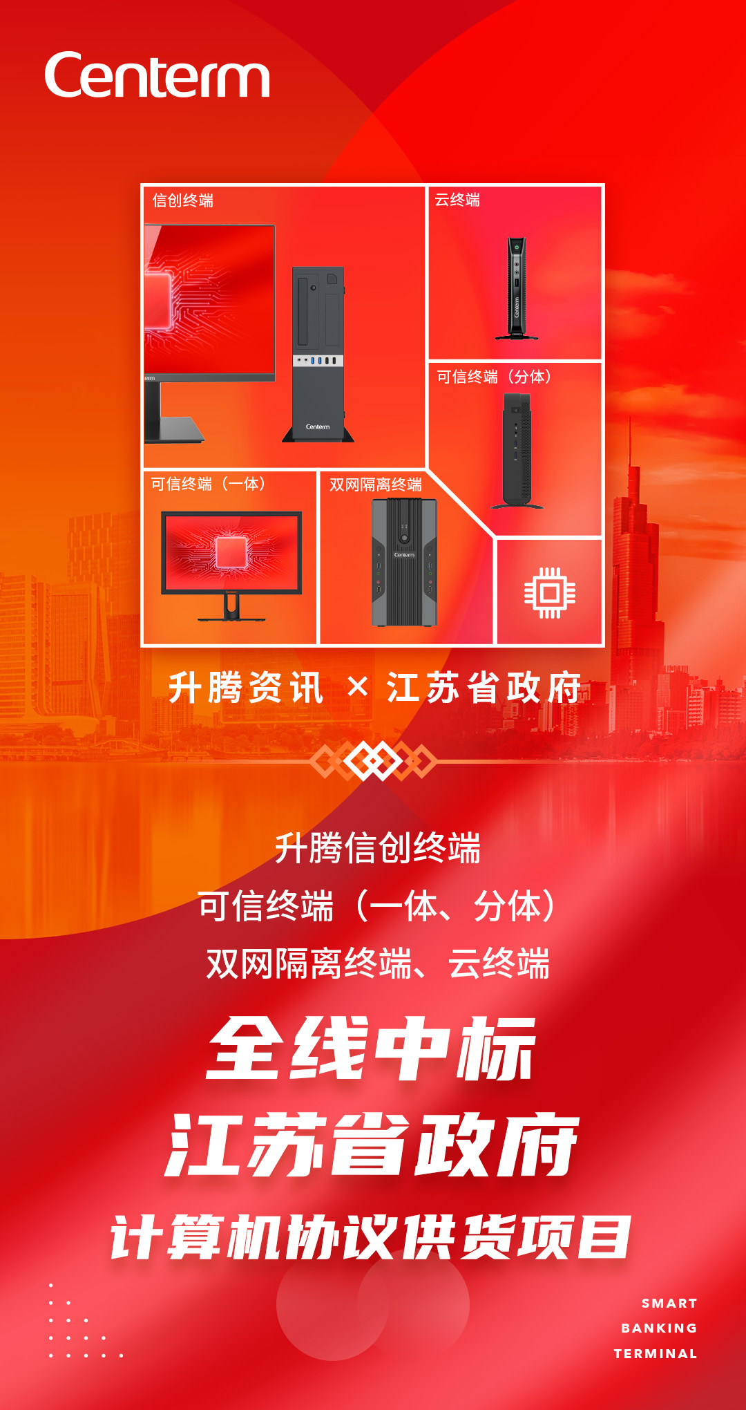 升腾可信终端(一体、分体)、双网隔离终端、云终端凭借卓越性能、高度的安全性、集中管理便捷性和对跨平台操作的良好支持入围项目,再次展现其强有力的竞争优势。此次入围的升腾多类终端产品全面满足江苏省党政机关、事业单位及团体组织在办公、生产等应用场景的需求,基于不同场景应用进行性能和外形优化,加速政务客户智能化升级。