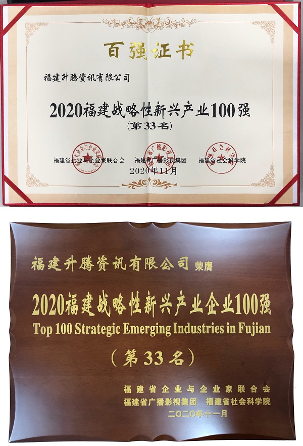 其中,升腾凭借深耕IT领域18年的创新实力和技术沉淀,入选“2020年福建战略性新兴产业企业100强”。本次入选,体现了社会各界对升腾的高度认可,也彰显了升腾在IT领域创新技术研发的领先优势和强大的企业实力。