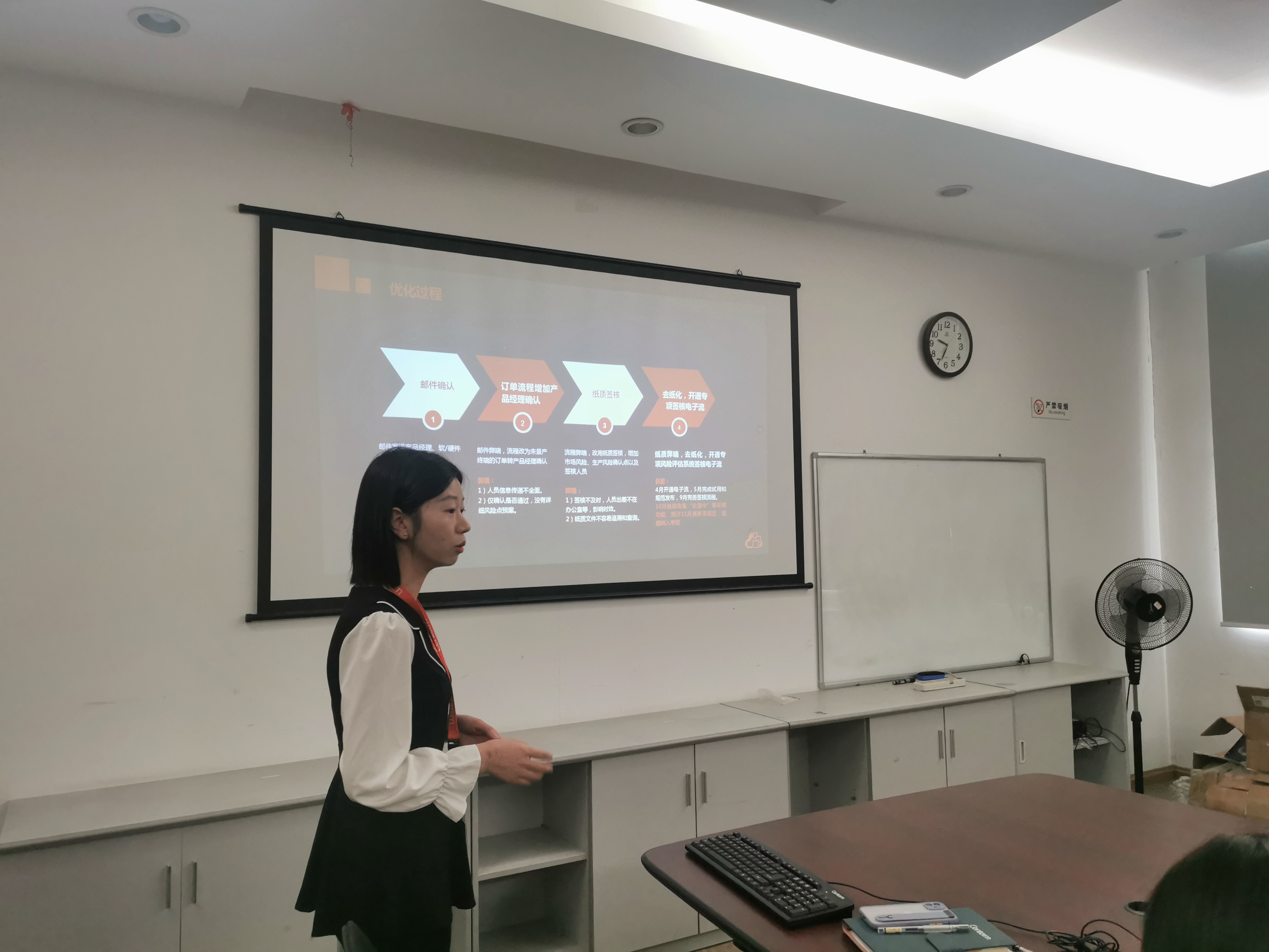 来自品质管理部的李英在此次大赛实力夺得一等奖,在平常工作中,她就是一个比较会“折腾”的人,针对工作中不合理的地方,不停地折腾和优化,寻找最合适的流程。在未量产产品特需单需求下,为了保障品质风险、提早做好对应措施,开通专项评估流程。从最开始的邮件确认,到订单增加产品经理确认,以及改为纸质签核,最终优化去纸质化,开通专项签核电子流,让流程很好做到规范化,把控了出货风险,规避了实际执行各类问题。
