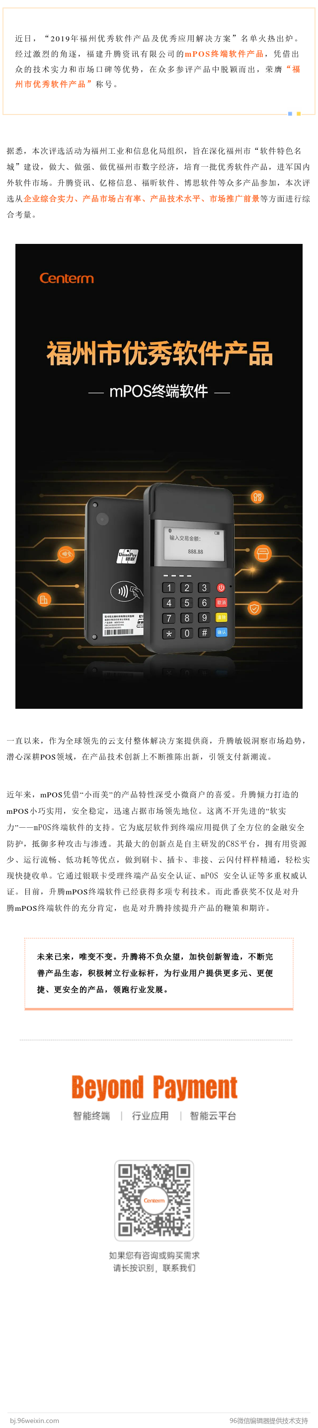 喜讯|腾博会官网mPOS软件实力斩获“2019年福州优秀软件产品”殊荣