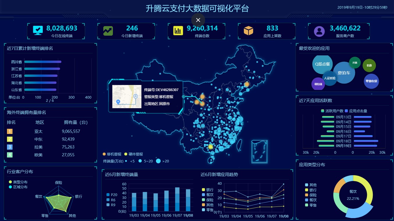 银行在终端定位监控改造过程中,存在终端数量大、布局分散、终端类型多、改造时间长、成本高等困恼。升腾云支付快速响应银行需求,提供灵活定制化的终端改造方案,满足银行多元化的终端改造需求。升腾已全面支持智能POS和扫码POS终端地理位置监控的改造工作,为收单机构实现每一笔交易都能上送地理位置信息。