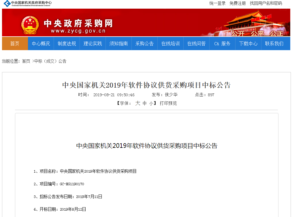 这是相继2017年升腾威讯系列软件产品中标中央国家软件协议供货采购项目后,再一次成功中标该项目。中央国家机关协议供货项目是我国政府采购领域级别最高、覆盖面最广的采购项目之一。此项目对所有候选产品从公司规模、技术实力、以往的成功案例、解决方案的水平等各方面都有着严格的标准。