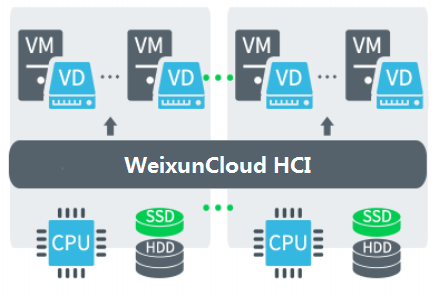 为了承载用户核心业务并稳定运行,升腾威讯超融合通过将复杂的虚拟化架构向极简的超融合虚拟化架构演进,在灵活弹性扩容、高性能缓存、分布式调度、数据高可靠等多方面进行了升级优化,进一步降低资源管理的复杂性。
