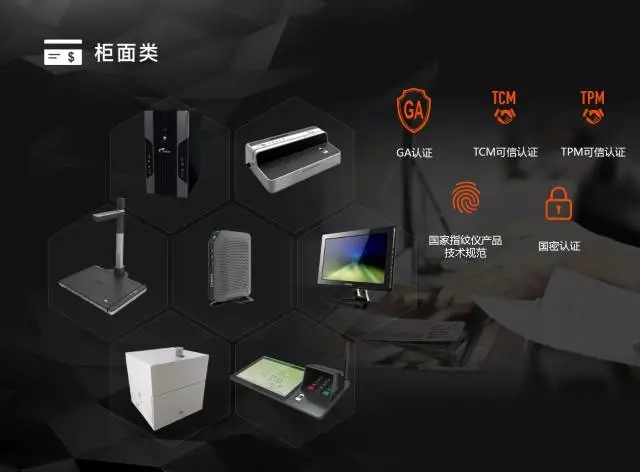为了顺应国家对银行网点安全监管的要求,升腾资讯对营业厅方案进行安全升级改造,涵盖了移动类设备、自助类设备,柜面类设备等,这些产品由升腾资讯独立研发,并拥有自主知识产权,均符合一行三会标准(人民银行,保监会,证监会,银监会),能够确保金融系统的安全、可靠和稳定。