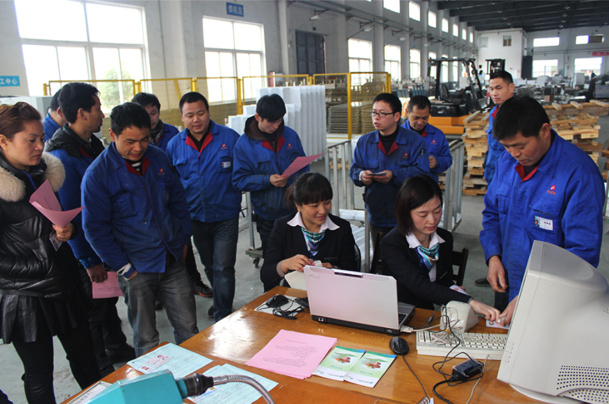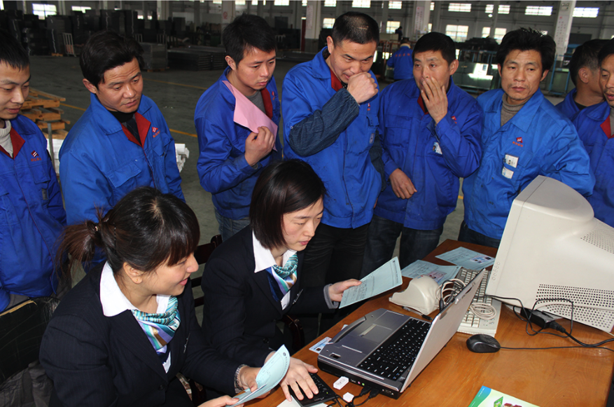 繁忙的车间,紧张的工作节奏,工人们白天几乎无法抽空到银行网点办理业务。为解决外工人们的金融服务需求,近期,浙江德清农商银行深入浙江解放装饰工程公司车间,现场为工人们提供优质的金融服务。