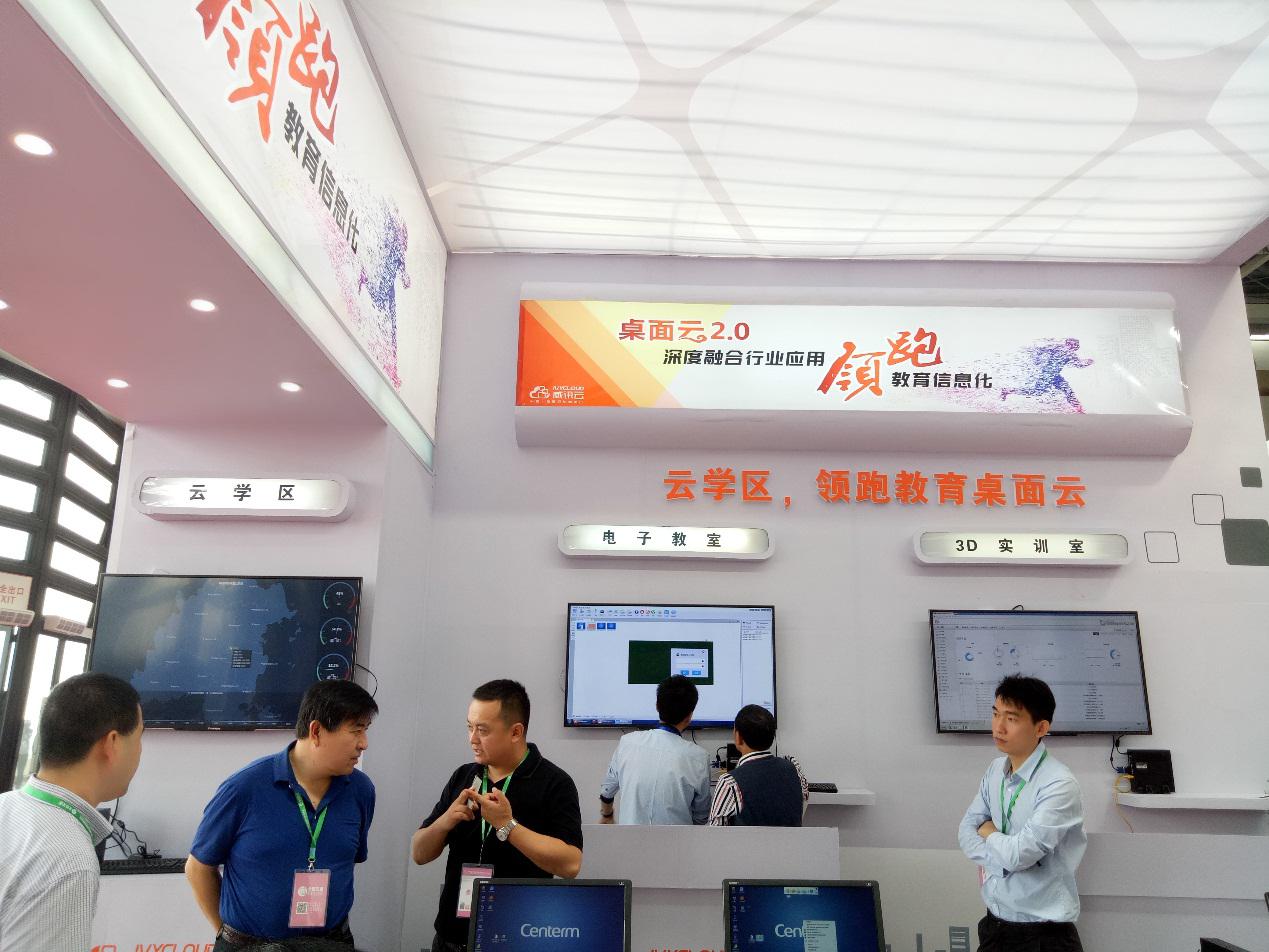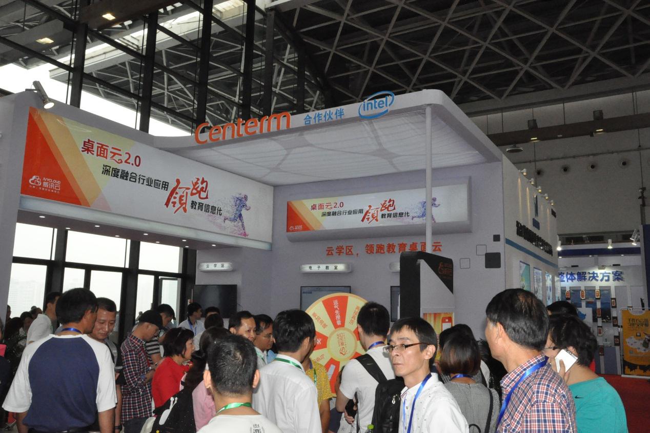 此次展会规模浩大,热闹非凡,作为国内领先的桌面云厂商,威讯云携“云学区”和 “云教室”两大教育信息化产品重磅展出,提出新概念:“云学区,领跑教育信息化”,展区现场被老师们和行业客户团团围住,人员络绎不绝,现场与来自各地的教育从业者、运营商、行业客户一起分享了推进教育均衡化发展的新路子,以及建设新型教育信息化平台的经验。